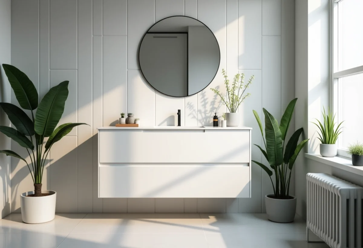 Le blanc a la capacité de réfléchir la lumière, ce qui accentue la sensation d’espace dans les petites salles de bain. En choisissant un meuble blanc, vous créez une illusion d’agrandissement de la pièce, la rendant plus aérée et lumineuse. Cela est particulièrement efficace dans les salles de bain modernes où chaque centimètre compte.